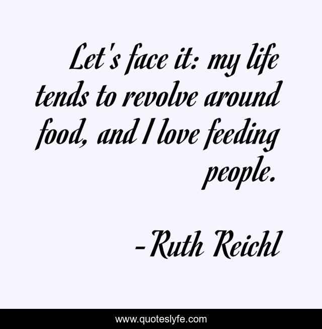 This page presents the quote "Let's face it: my life tends to revolve around food, and I love feeding people.". Author of this quote is Ruth Reichl. This quote is about life, love, affection, people,.
