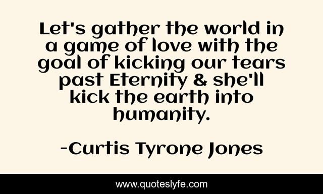 Let's gather the world in a game of love with the goal of kicking our tears past Eternity & she'll kick the earth into humanity.