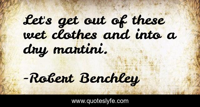 This page presents the quote "Let's get out of these wet clothes and into a dry martini.". Author of this quote is Robert Benchley. This quote is about , drink, eat, merry,.