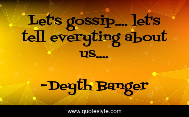 This page presents the quote "Let's gossip.... let's tell everyting about us....". Author of this quote is Deyth Banger. This quote is about everything, us, gossip,.