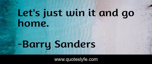 This page presents the quote "Let's just win it and go home.". Author of this quote is Barry Sanders. This quote is about go, win, just,.