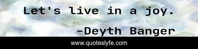 This page presents the quote "Let's live in a joy.". Author of this quote is Deyth Banger. This quote is about joy, live, let-s,.