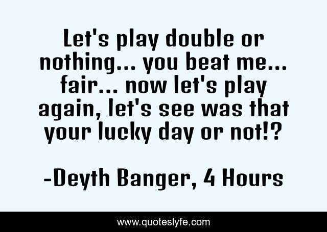 "Deyth Banger, 4 Hours Quotes." Quoteslyfe.com, 2025. Mon. 08 Dec. 2025. <https://www.quoteslyfe.com/quote/Let-s-play-double-or-nothing-you-203161>.