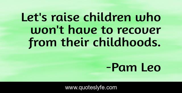 This page presents the quote "Let's raise children who won't have to recover from their childhoods.". Author of this quote is Pam Leo. This quote is about childhood, raising-children,.