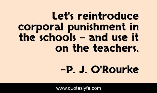 This page presents the quote "Let's reintroduce corporal punishment in the schools - and use it on the teachers.". Author of this quote is P. J. O'Rourke. This quote is about punishment, teachers,.