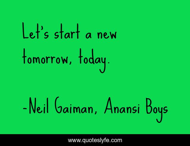 "Neil Gaiman, Anansi Boys Quotes." Quoteslyfe.com, 2025. Mon. 08 Dec. 2025. <https://www.quoteslyfe.com/quote/Let-s-start-a-new-tomorrow-today-4655>.