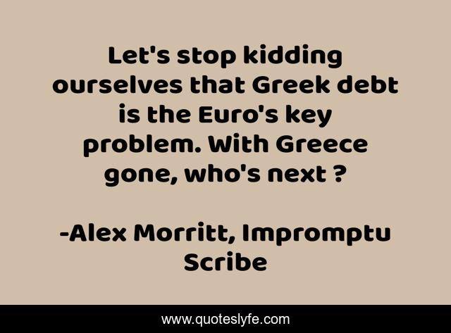 "Alex Morritt, Impromptu Scribe Quotes." Quoteslyfe.com, 2026. Wed. 14 Jan. 2026. <https://www.quoteslyfe.com/quote/Let-s-stop-kidding-ourselves-that-Greek-114023>.