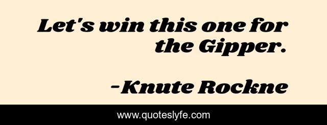 This page presents the quote "Let's win this one for the Gipper.". Author of this quote is Knute Rockne. .