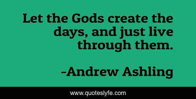 This page presents the quote "Let the Gods create the days, and just live through them.". Author of this quote is Andrew Ashling. This quote is about living-in-the-moment, stress-relief, wisdom-inspirational, living-life,.