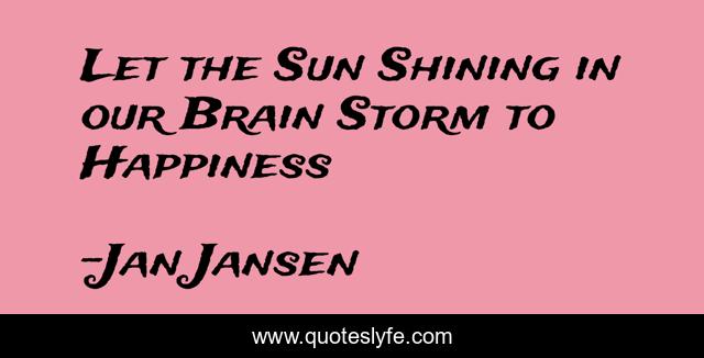 This page presents the quote "Let the Sun Shining in our Brain Storm to Happiness". Author of this quote is Jan Jansen. .