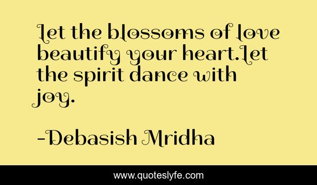 This page presents the quote "Let the blossoms of love beautify your heart.Let the spirit dance with joy.". Author of this quote is Debasish Mridha. This quote is about life, love, knowledge, inspirational, intelligence, philosophy, wisdom, quotes, affection,.
