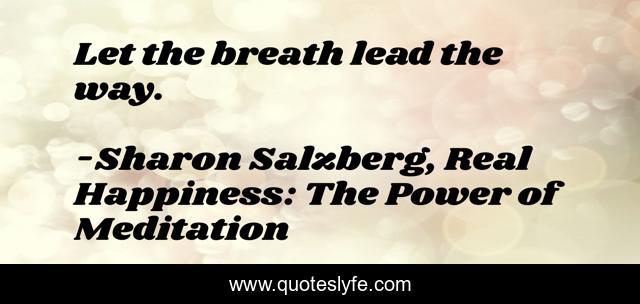 This page presents the quote "Let the breath lead the way.". Author of this quote is Sharon Salzberg, Real Happiness: The Power of Meditation. This quote is about buddhism, meditation, mindfulness,.