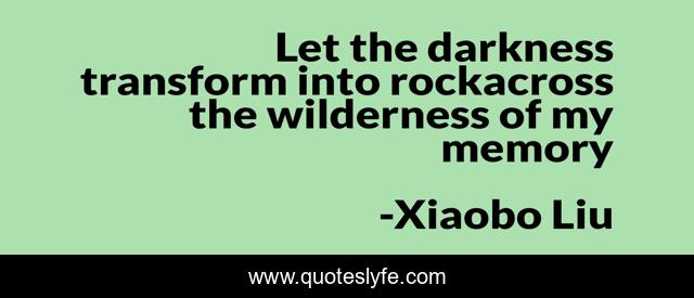 This page presents the quote "Let the darkness transform into rockacross the wilderness of my memory". Author of this quote is Xiaobo Liu. This quote is about remembrance, despair, transformation, desperation, steadiness,.