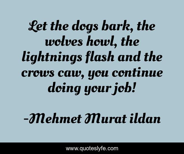 This page presents the quote "Let the dogs bark, the wolves howl, the lightnings flash and the crows caw, you continue doing your job!". Author of this quote is Mehmet Murat ildan. .