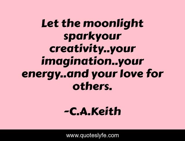 This page presents the quote "Let the moonlight sparkyour creativity..your imagination..your energy..and your love for others.". Author of this quote is C.A.Keith. This quote is about enthusiasm, inspiring, inspirational,.