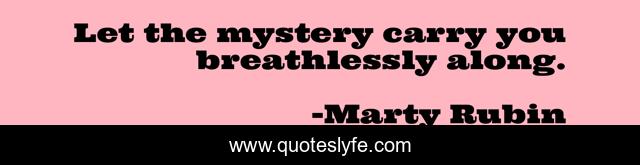 This page presents the quote "Let the mystery carry you breathlessly along.". Author of this quote is Marty Rubin. .
