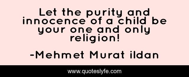 This page presents the quote "Let the purity and innocence of a child be your one and only religion!". Author of this quote is Mehmet Murat ildan. .