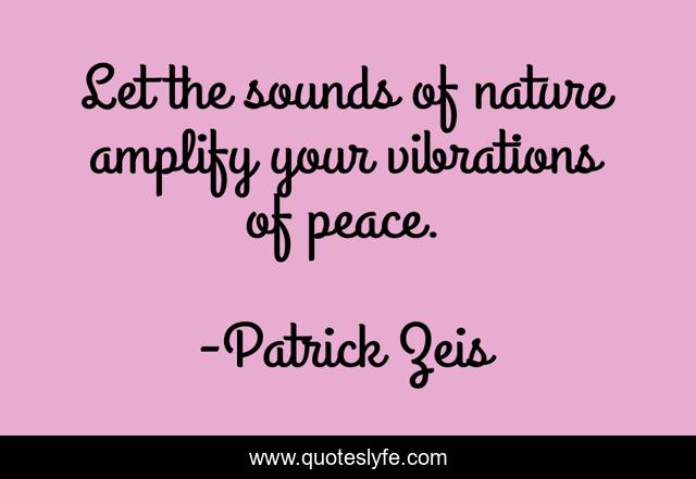 This page presents the quote "Let the sounds of nature amplify your vibrations of peace.". Author of this quote is Patrick Zeis. This quote is about wilderness, nature, peace, transcendentalism, peace-of-mind, spirituality, transcendental,.