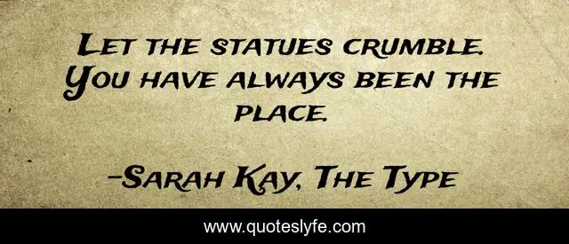 This page presents the quote "Let the statues crumble. You have always been the place.". Author of this quote is Sarah Kay, The Type. This quote is about self-love, love, i, self, identity, affection,.