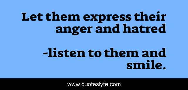 This page presents the quote "Let them express their anger and hatred". Author of this quote is listen to them and smile.. .