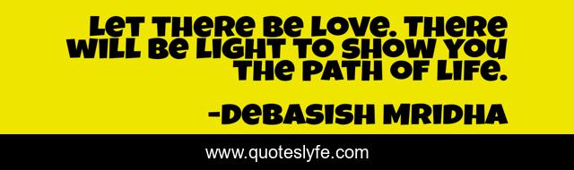 This page presents the quote "Let there be love. There will be light to show you the path of life.". Author of this quote is Debasish Mridha. This quote is about life, love, knowledge, inspirational, intelligence, philosophy, wisdom, quotes, affection,.