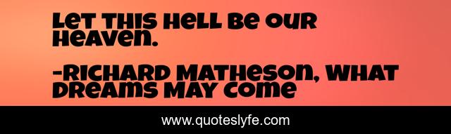 This page presents the quote "Let this hell be our heaven.". Author of this quote is Richard Matheson, What Dreams May Come. This quote is about hell, heaven, love, affection,.