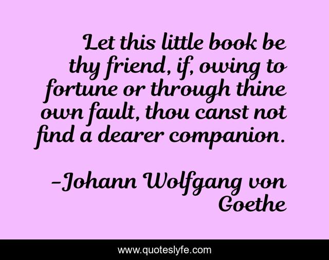This page presents the quote "Let this little book be thy friend, if, owing to fortune or through thine own fault, thou canst not find a dearer companion.". Author of this quote is Johann Wolfgang von Goethe. This quote is about loneliness, books, reading, literature,.