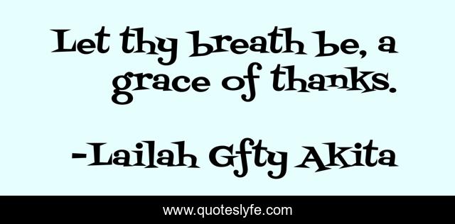 This page presents the quote "Let thy breath be, a grace of thanks.". Author of this quote is Lailah Gfty Akita. This quote is about inspiring, thanks, life, graitude,.