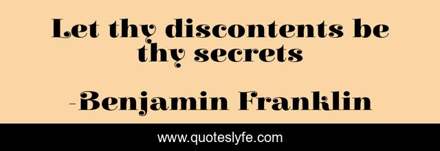 "Benjamin Franklin Quotes." Quoteslyfe.com, 2025. Mon. 08 Dec. 2025. <https://www.quoteslyfe.com/quote/Let-thy-discontents-be-thy-secrets-258015>.