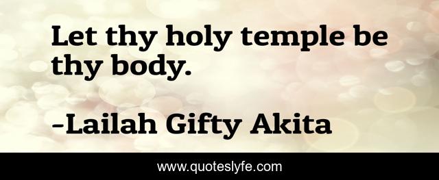 This page presents the quote "Let thy holy temple be thy body.". Author of this quote is Lailah Gifty Akita. This quote is about body, healthy-living, wise-words, christain, temple,.