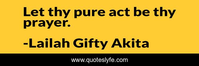 This page presents the quote "Let thy pure act be thy prayer.". Author of this quote is Lailah Gifty Akita. This quote is about inspiring, christian, wise-sayings, actions, pure, prayer, deed,.