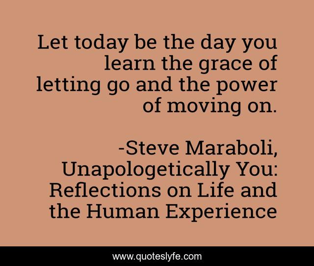 This page presents the quote "Let today be the day you learn the grace of letting go and the power of moving on.". Author of this quote is Steve Maraboli, Unapologetically You: Reflections on Life and the Human Experience. This quote is about life, success, power, grace, let-go, inspirational, enthusiasm, moving-on,.