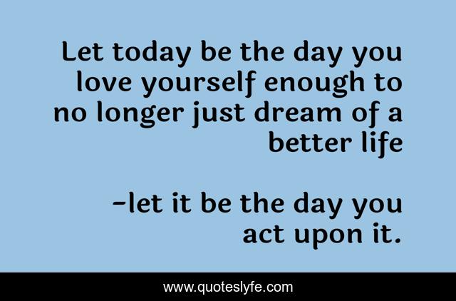 This page presents the quote "Let today be the day you love yourself enough to no longer just dream of a better life". Author of this quote is let it be the day you act upon it.. .