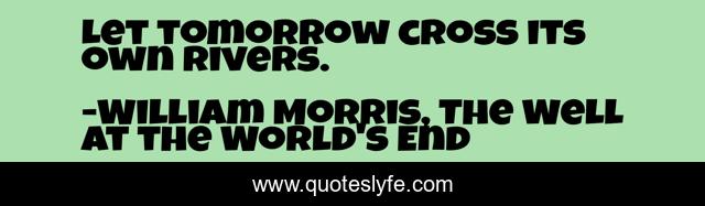 "William Morris, The Well at the World's End Quotes." Quoteslyfe.com, 2025. Sat. 06 Dec. 2025. <https://www.quoteslyfe.com/quote/Let-tomorrow-cross-its-own-rivers-181772>.