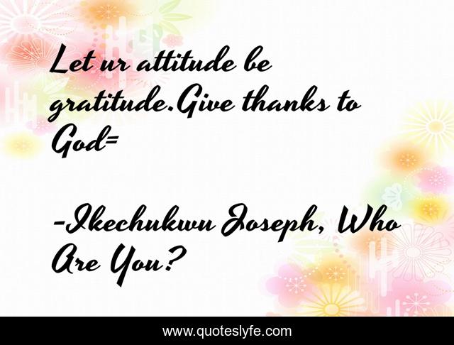 "Ikechukwu Joseph, Who Are You? Quotes." Quoteslyfe.com, 2025. Fri. 05 Dec. 2025. <https://www.quoteslyfe.com/quote/Let-ur-attitude-be-gratitude-Give-thanks-84907>.