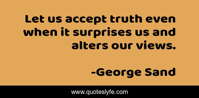This page presents the quote "Let us accept truth even when it surprises us and alters our views.". Author of this quote is George Sand. .