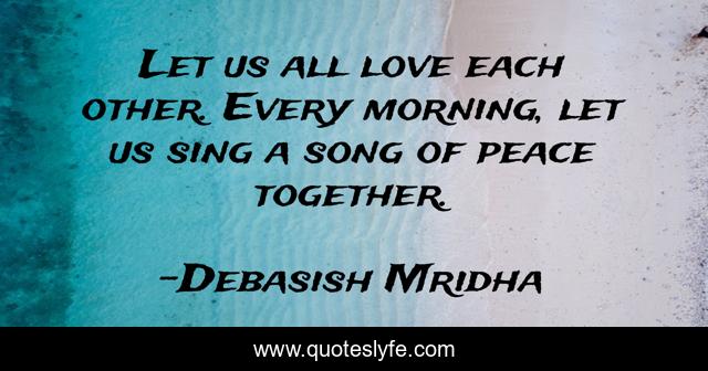 This page presents the quote "Let us all love each other. Every morning, let us sing a song of peace together.". Author of this quote is Debasish Mridha. This quote is about peace, love, love-each-other, philosophy, debasish-mridha, quotes, song-of-peace, inspirational, enthusiasm,.