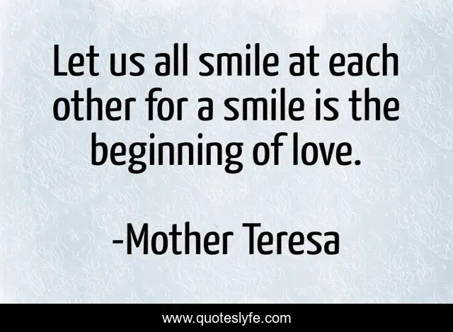 "Mother Teresa Quotes." Quoteslyfe.com, 2025. Fri. 05 Dec. 2025. <https://www.quoteslyfe.com/quote/Let-us-all-smile-at-each-other-15306>.
