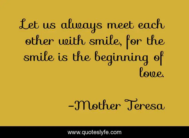 Let us always meet each other with smile, for the smile is the beginning of love.