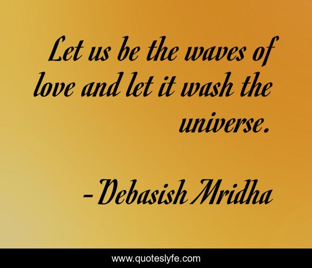 This page presents the quote "Let us be the waves of love and let it wash the universe.". Author of this quote is Debasish Mridha. This quote is about life, debasish, love, universe, mridha, philosophy, waves, affection,.
