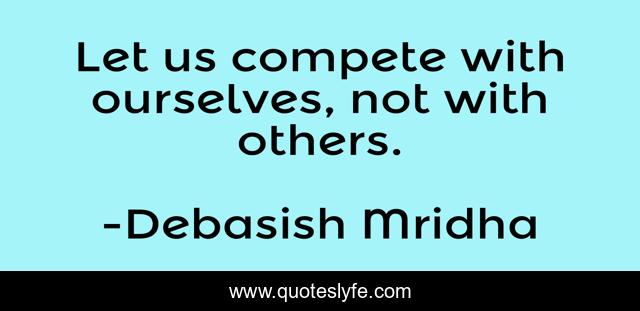 This page presents the quote "Let us compete with ourselves, not with others.". Author of this quote is Debasish Mridha. This quote is about debasish, mridha, philosophy, debasish-mridha, do-not-compete-with-others, compete-with-ourselves, competition,.