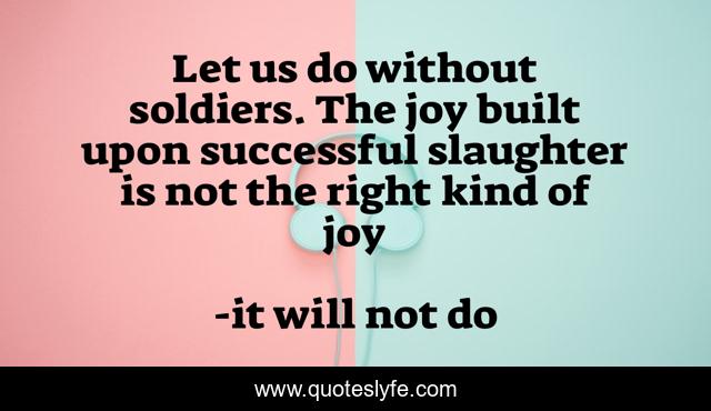 This page presents the quote "Let us do without soldiers. The joy built upon successful slaughter is not the right kind of joy". Author of this quote is it will not do. .