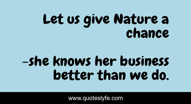 "she knows her business better than we do. Quotes." Quoteslyfe.com, 2025. Mon. 08 Dec. 2025. <https://www.quoteslyfe.com/quote/Let-us-give-Nature-a-chance-72244>.