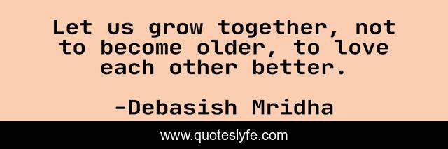 This page presents the quote "Let us grow together, not to become older, to love each other better.". Author of this quote is Debasish Mridha. This quote is about love, grow-together, debasish-mridha, philosophy, love-each-other, become-older, quotes, debasish-mridha-md, inspirational,.