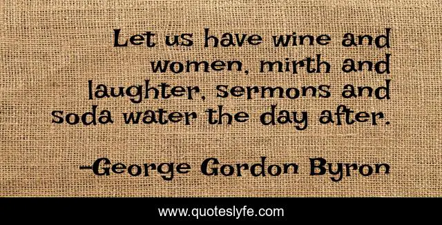 This page presents the quote "Let us have wine and women, mirth and laughter, sermons and soda water the day after.". Author of this quote is George Gordon Byron. This quote is about song, wine, women,.