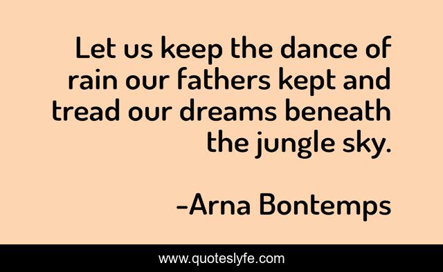 This page presents the quote "Let us keep the dance of rain our fathers kept and tread our dreams beneath the jungle sky.". Author of this quote is Arna Bontemps. This quote is about dance, sky, rain,.