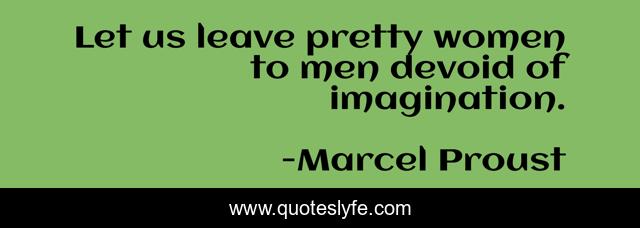 This page presents the quote "Let us leave pretty women to men devoid of imagination.". Author of this quote is Marcel Proust. This quote is about imagination, men, pretty,.