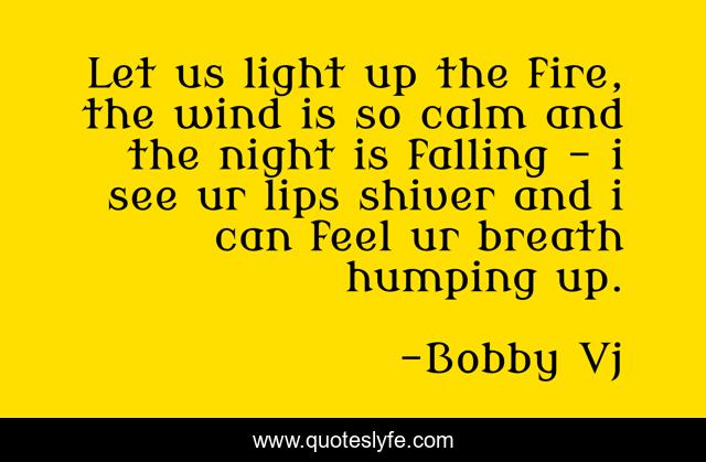 This page presents the quote "Let us light up the fire, the wind is so calm and the night is falling - i see ur lips shiver and i can feel ur breath humping up.". Author of this quote is Bobby Vj. .