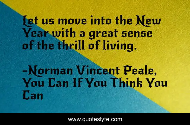 This page presents the quote "Let us move into the New Year with a great sense of the thrill of living.". Author of this quote is Norman Vincent Peale, You Can If You Think You Can. This quote is about enthusiasm, inspirational,.