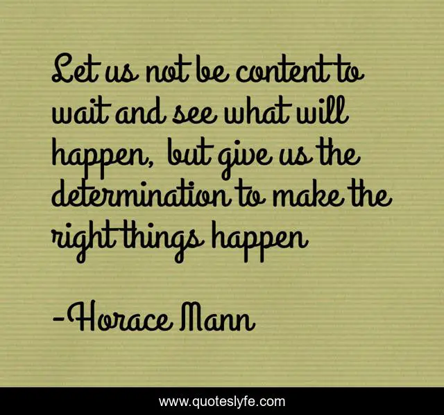 This page presents the quote "Let us not be content to wait and see what will happen, but give us the determination to make the right things happen". Author of this quote is Horace Mann. .